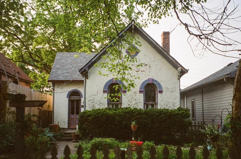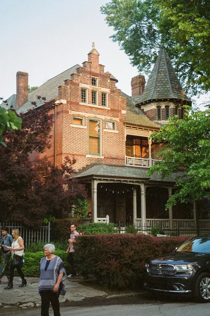 На відміну від котеджів робітничого класу, Woodruff Place приваблював заможних верств населення, які будували величні будинки. Але околиці різко занепали після Другої світової війни. Джентрифікація прийшла на Woodruff Place рано, і з 1980-х і 1990-х років він знову став прекрасним і чарівним. Ціни на житло відображають це. Тим часом призахідне сонце та густі крони дерев змовилися приглушити природне світло. IQZoom EZY увімкнув спалах.