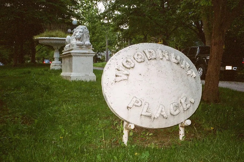 А що там у сусіднім Вудрафф Плейс, першим передмістям Індіанаполіса. Збентежує просто таке написання, тому що це лише миля чи близько того від центру міста. Але в 1872 році, коли він був заснований, це було досить далеко від міста. Це спланована громада з трьох паралельних бульварів, уздовж яких розташовані великі будинки.