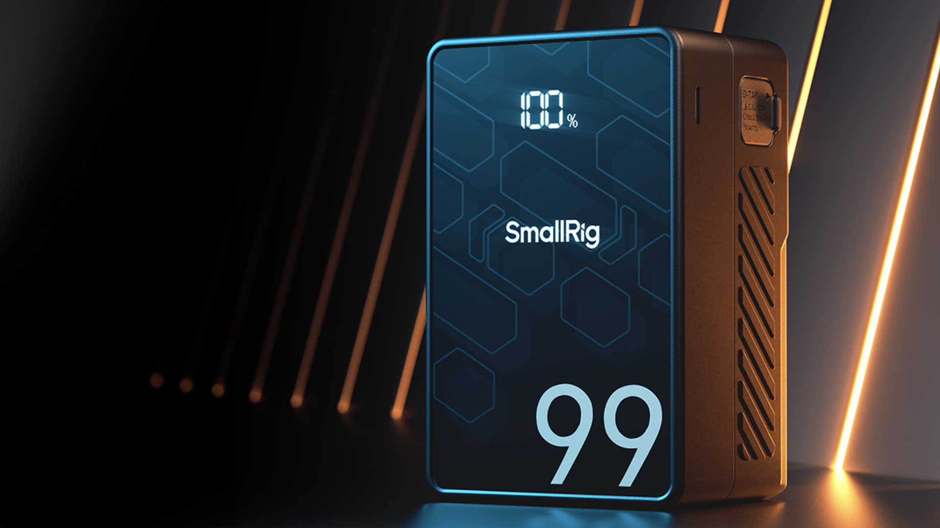 Розміри всього 11.2x 7.2 x 5.36 см, вага – 595г, що на 30% менше за стандартні акумулятори V-Mount. Зручно поміщається в рюкзак чи кишеню. Дружній до авіаперевезень. Оболонка з вогнестійкого ABS і PC, нековзкий дизайн для комфортного користування.