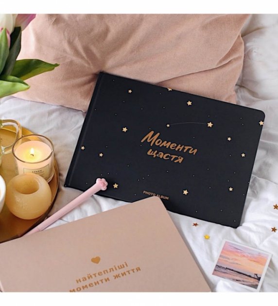 «Счастливые моменты жизни» - фотоальбом для особых историй с семьей, друзьями и любимыми людьми. Для празднований, приключений, больших и малых радостей. Собирай яркие воспоминания на его стильных черных страницах. Теперь дарить и заполнять альбом еще приятнее! Размер: 22,5х22,5 смТвердая обложкаТиснение фольгой — Rose Gold30 страницВнутри страницы из черного дизайнерского картона, без печати