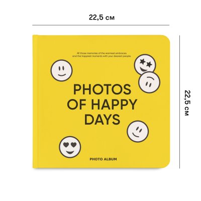 Смайликов не бывает много поэтому создали этот солнечный фотоальбом. Выбирай его для хранения счастливых моментов с семьей и друзьями. Квадратная форма, плотные страницы. Теперь дарить и заполнять альбом еще приятнее. Размер: 22,5х22,5 смТвердая обложка30 страниц белого цвета, без печати