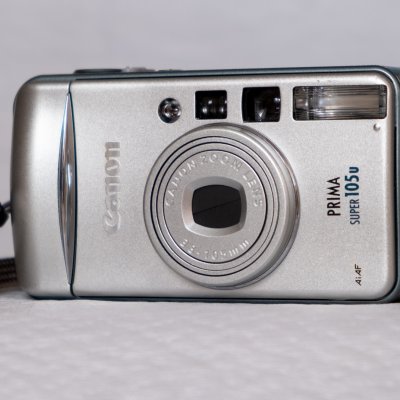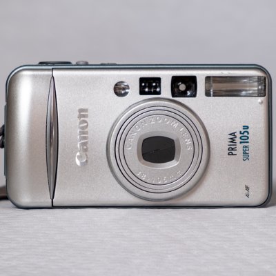Canon Prima Super 105u 35-мм камера Отличная компактная фотокамера от Canon Четкий объектив с фокусным расстоянием 38–105 мм (макро: 0, 45м)АвтофокусДиафрагма f/4.7-10.5Регулируемые настройки вспышки, подавление красных глаз Таймер + АвтоспускНесколько режимов съемки: авто, портрет, макро, ночной портрет, спортИспользует батарейку CR2Ремешок на запястье