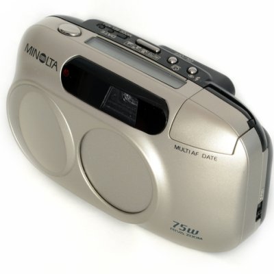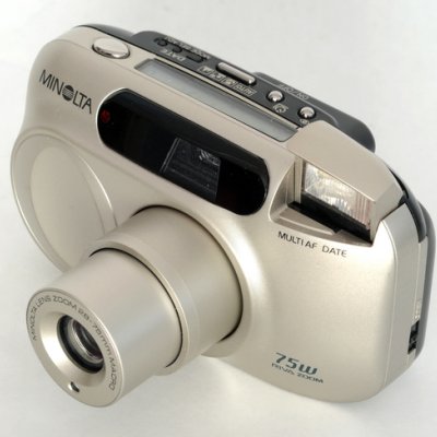 Пленочный фотоаппарат с зумом.Выпускалась с 1997 года, известна также под названиеями “Minolta Freedom Zoom Explorer EX” и “Minolta Capios 70“. Минимальное расстояние фокусировки объектива составляет 40 см.Minolta Riva Zoom 75w имеет встроенный экспонометр. Экспонометр предназначен для пленок с чувствительностью от ISO 25 до ISO 3200. Считывается с помощью кода DX. Настройки экспозиции автоматически определяются фотокамерой.Камера имеет четыре режима экспозиции (автоматический режим, макрорежим, ландшафтный режим и портретный режим).Отключаемая вспышка.Показывает хорошие результаты...