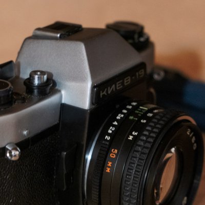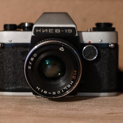 "Когда все ходили с Зенитами, эти фотоаппараты стояли на полках в витринах их покупали только профессионалы за сумашедшие деньги" - так высказался мой знакомый фотолюбитель когда увлекался фотографией в конце 80-х. Ки́ев-19 был выпущен как упрощённая и более дешевая модель Киев 20. А вот обновленная версия Киев 19М славится как раз плохим качеством, из-за пластикового корпуса что приводило к разшатонности корпуса и части механики. «Киев-19» — фотоаппарат с TTL-экспонометром и полуавтоматической установкой экспозиции при закрытой до рабочего значения...